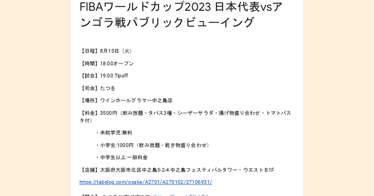 8月15日のバスケ日本代表強化試合、アンゴラ戦ですが、、、