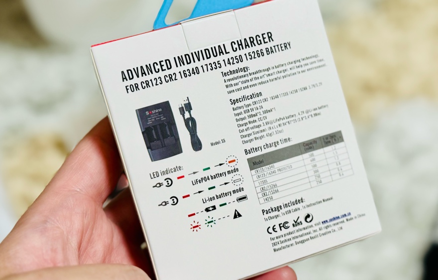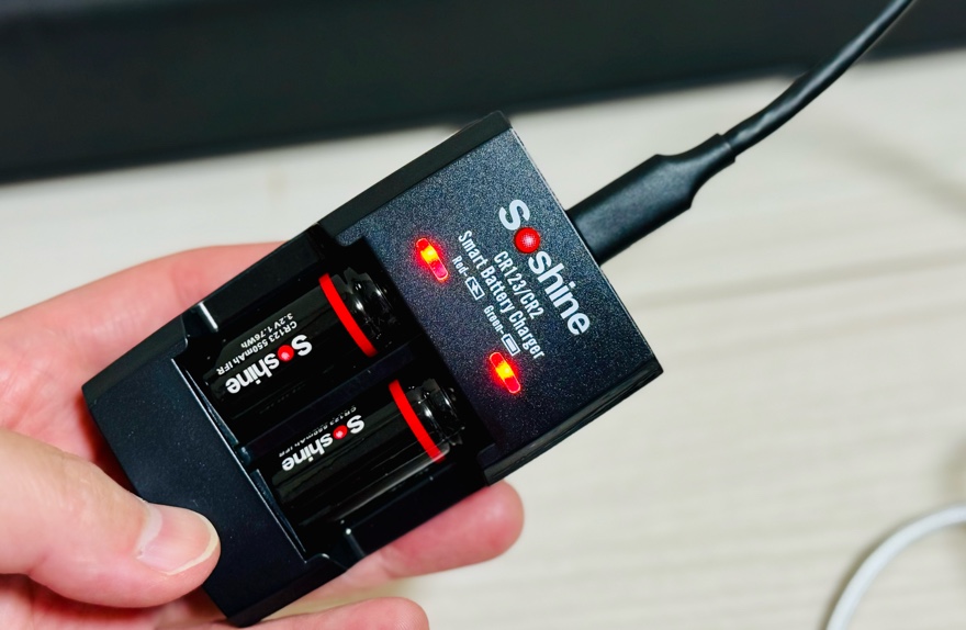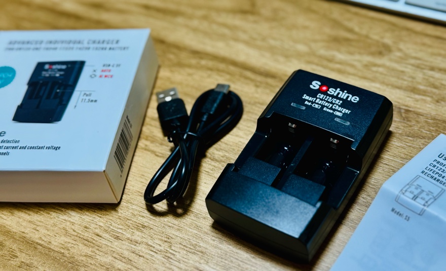 こちらの本体に、充電池CR123Aを差し込みます。