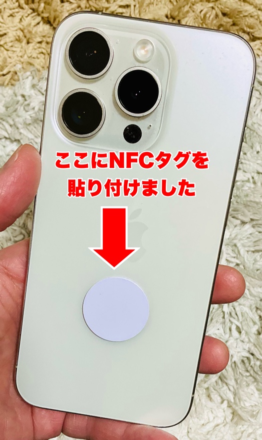 そして、その登録した、NFCタグを、スマホに貼り付けます。