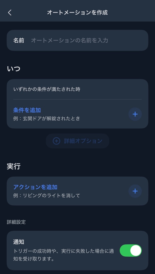 僕は試しに、「HEY!Siri! 照明をつけて」という言葉をきっかけに照明がオンオフするというアクションを設定しました。