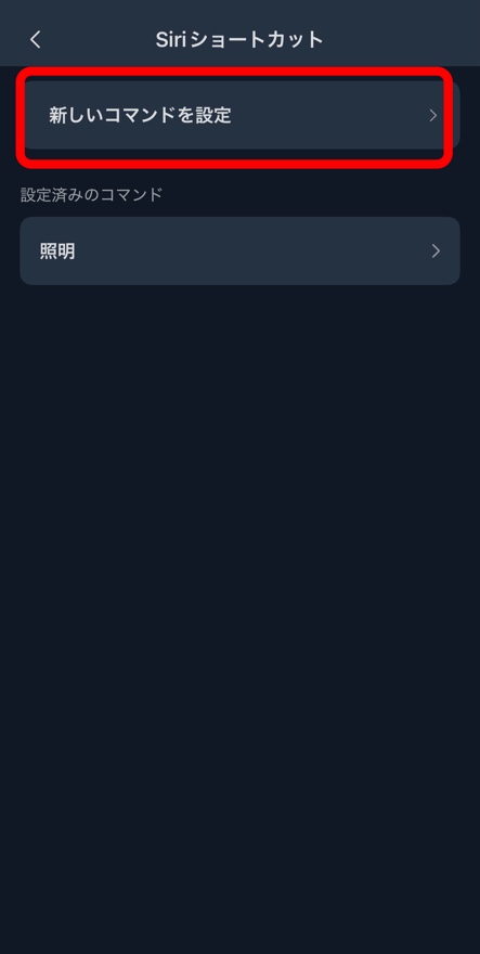 今回は、そのSiriのショートカットを【新しいコマンドの設定】から新規に作ります。