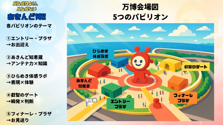 皆さんには、各パビリオンを回っていただくというコンセプト。