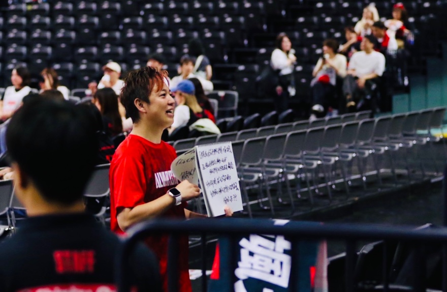 皆さん試合中に、「なになに?」ってなったら嫌だったので、事前に、フリップで客席に説明に行きました。