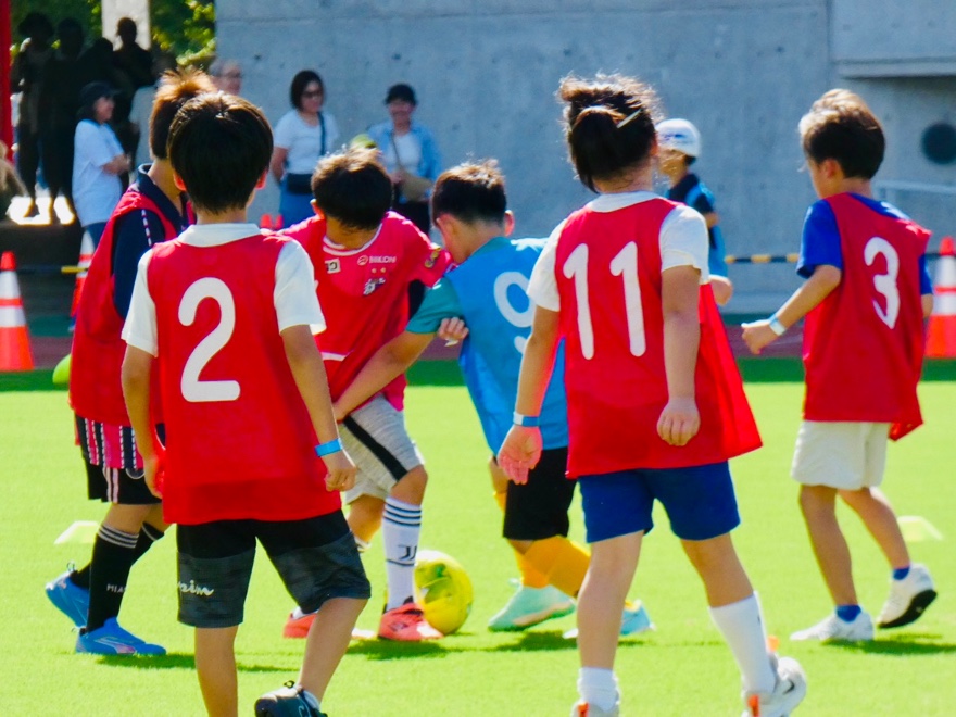フィールドの中では、セレッソ大阪とセレッソ大阪ヤンマーレディースの方々が、サッカー教室を!