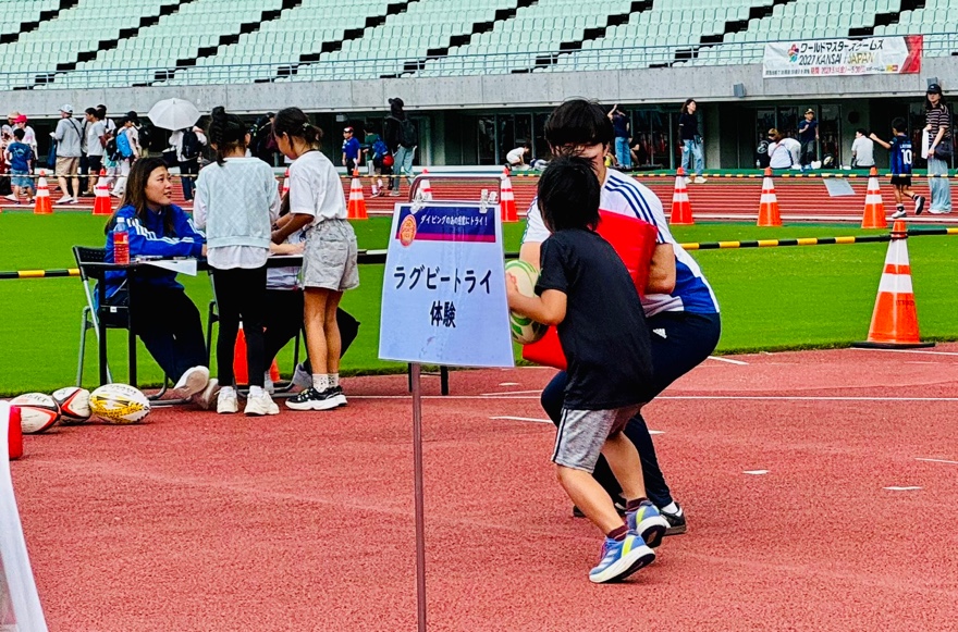 その他、レッドハリーケーンズ大阪の方々が、ラグビーを体験させてくれたり、、