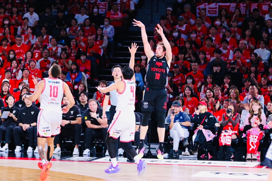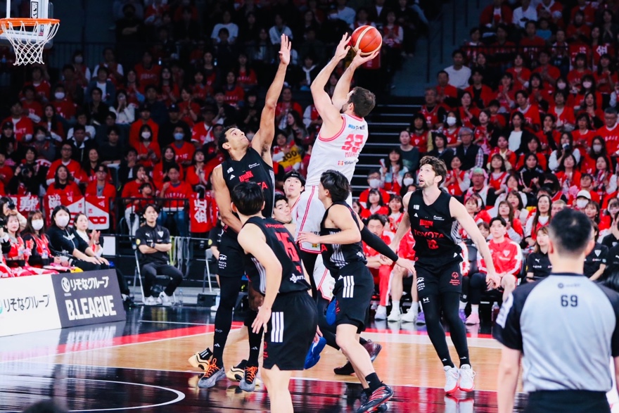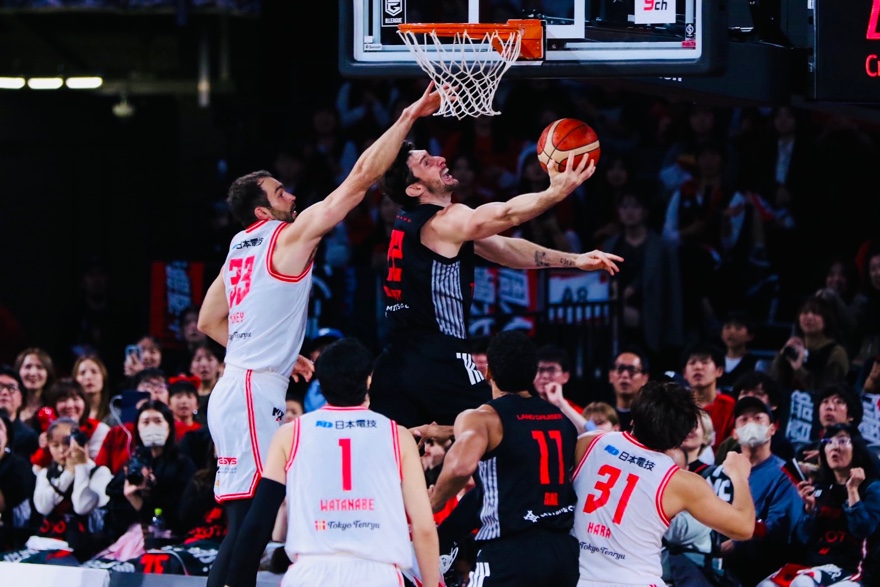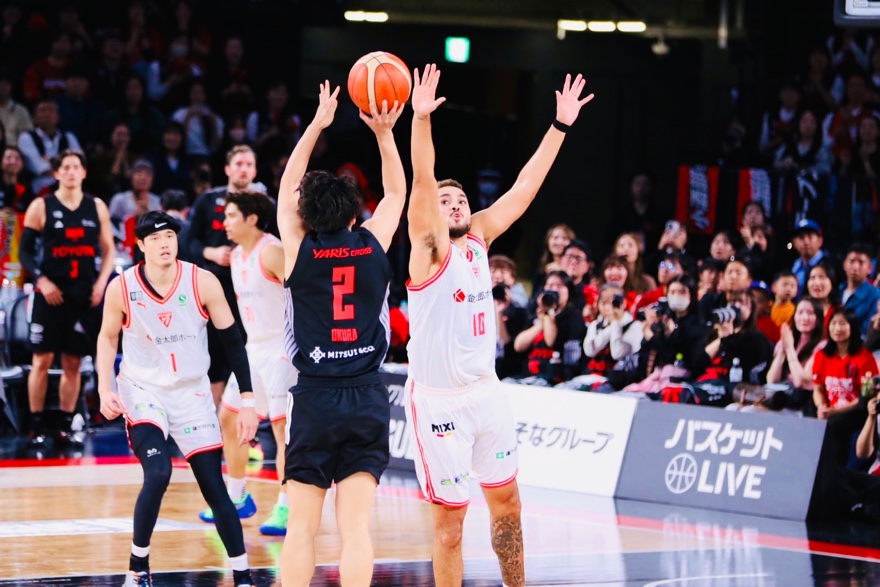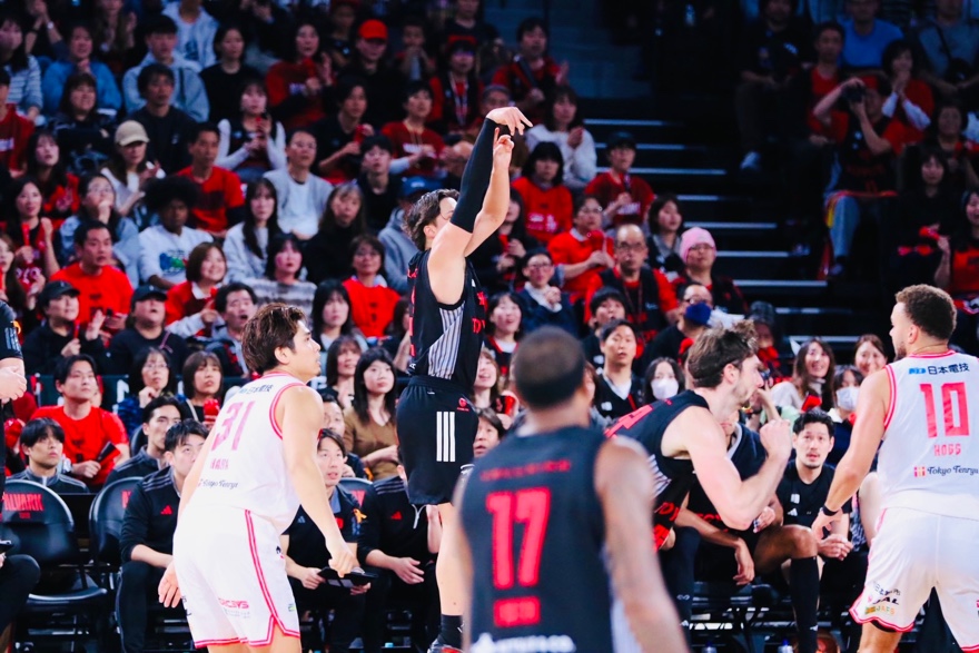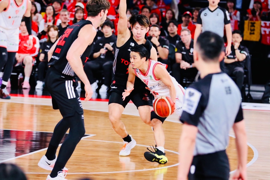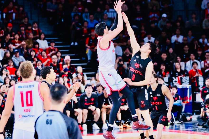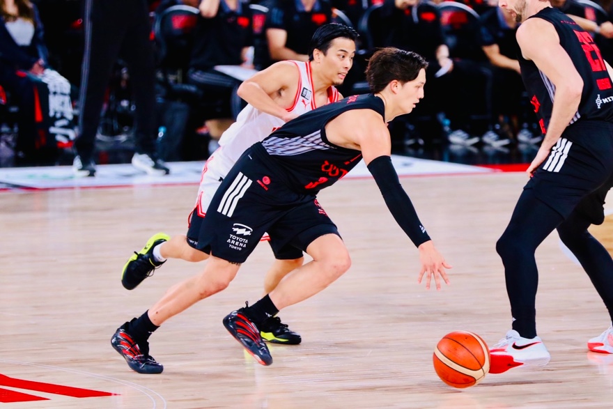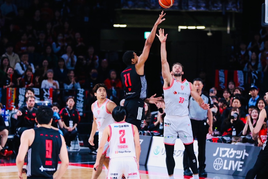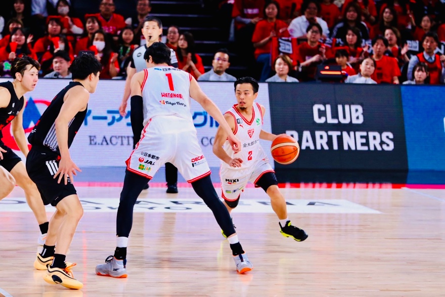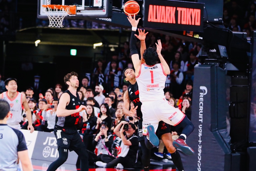 千葉ジェッツが前を走るが、しっかりと喰らいつくアルバルク東京。