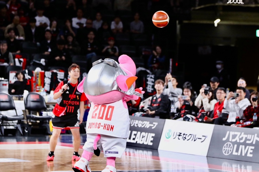 シュート対決では、ジャンボくんがスウィッシュでシュートを決めた時の会場の盛り上がりがすごかった。
