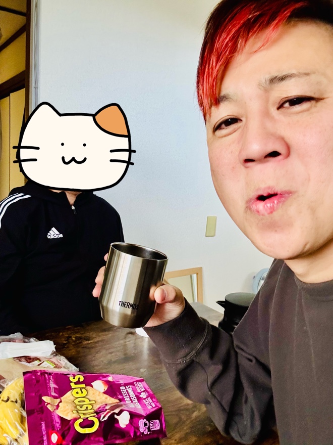 我が家といいつつも、一緒に焼き鳥を食べて、、、