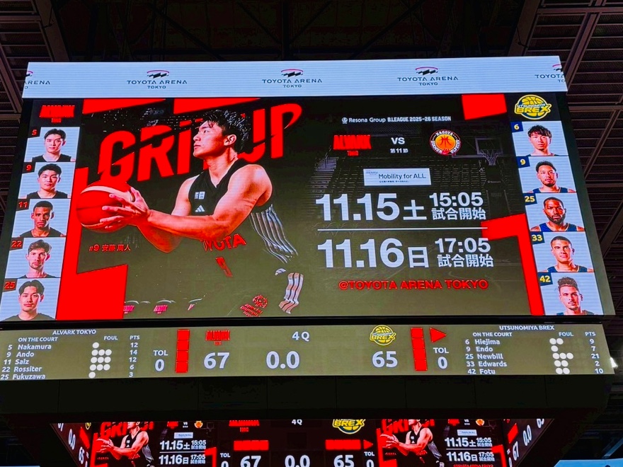パナソニックDAYということで、このTOYOTA ARENA TOKYOを舞台に撮影したCMも会場ビジョンでお届けしました。