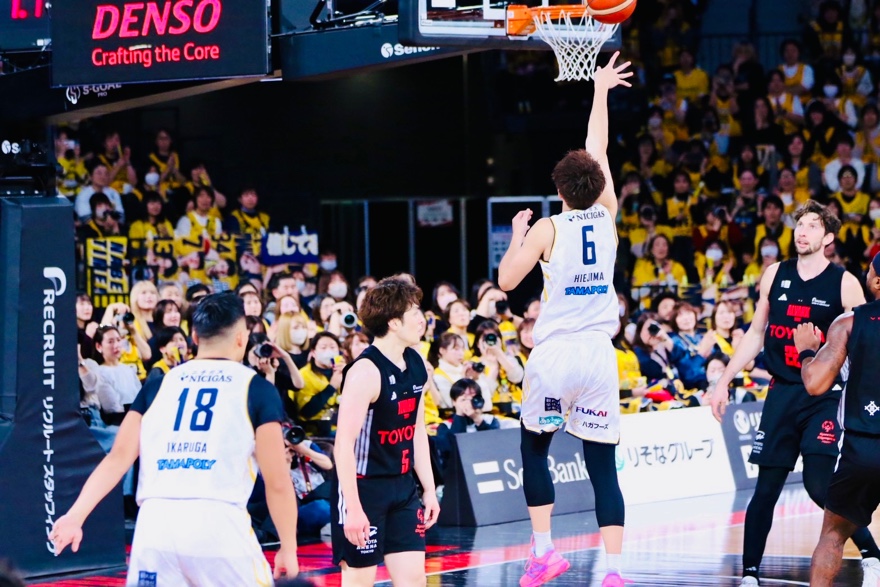 GAME2では、最後の最後で #5 中村選手がバスケットカウントを決めて勝ち切った。