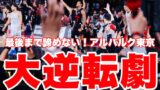一気にアルバルク東京のロゴ位置まで辿り着くと、そこでファンサービスを始めているではないか?!