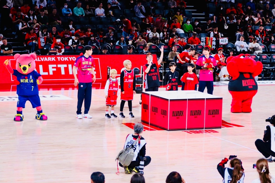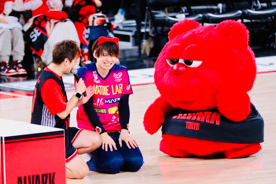 ハーフタイムには、なんと東京グレートベアーズから、#9 戸嵜 嵩大と、#26 伊藤 吏玖選手がゲストとして登場!