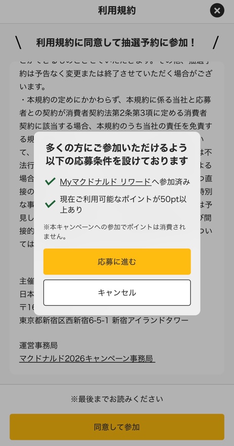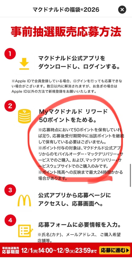 MY マクドナルドリワードってやつを50ポイント貯めないといけないみたい。