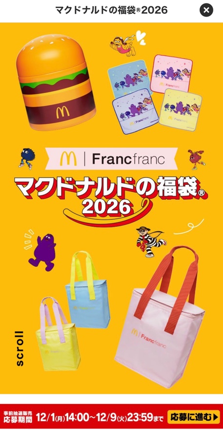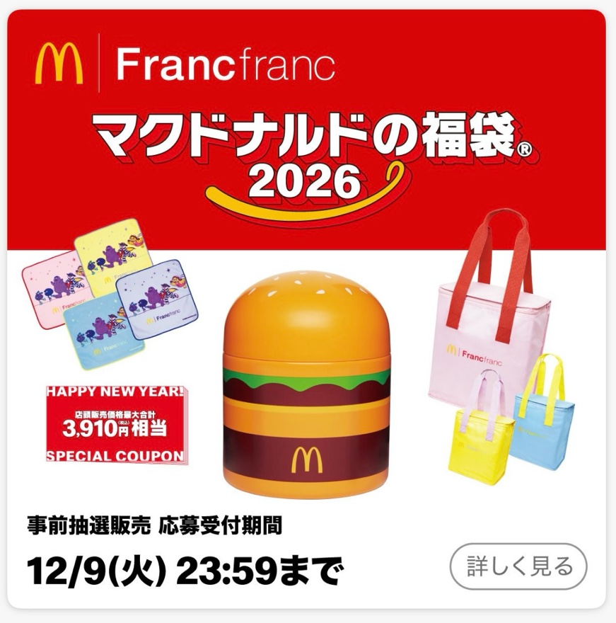 マクドナルドの福袋2026の応募がスタートしたという噂を聞きました。