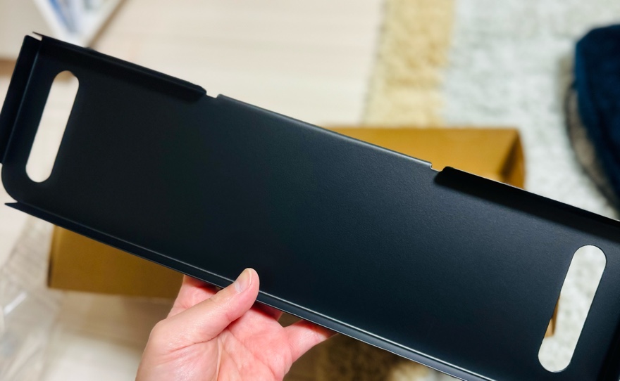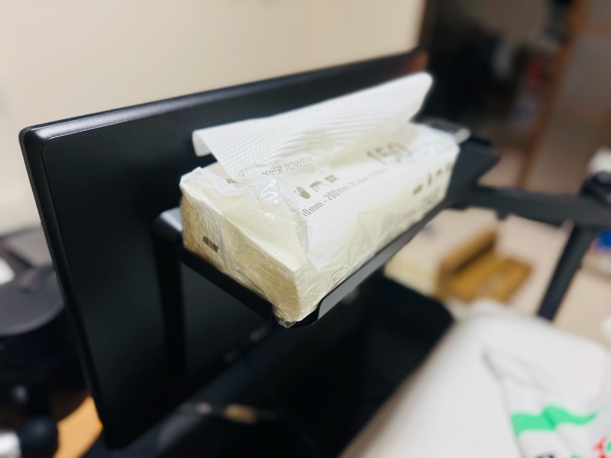 するとこんな感じで、モニター裏に収納スペースが登場しました。