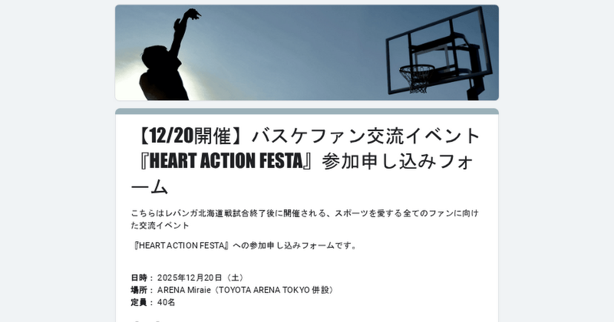 申し込みフォームは、最大40人の申し込みがあるとエントリーできなくなります。