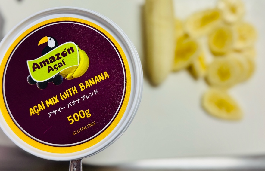 それに合わせて、今日は、業務スーパーで売ってる『アサイー バナナブレンド』を買ってきたので、、