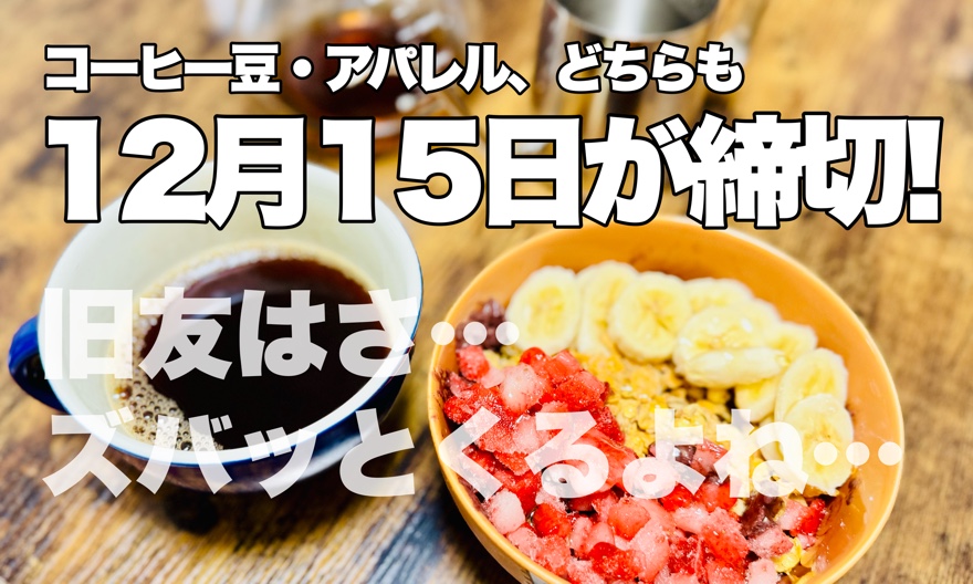 改めて言いますが、どちらも、12月15日(月)が締め切りとなりますので!!