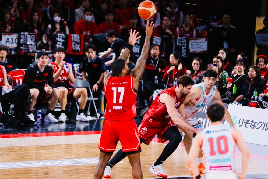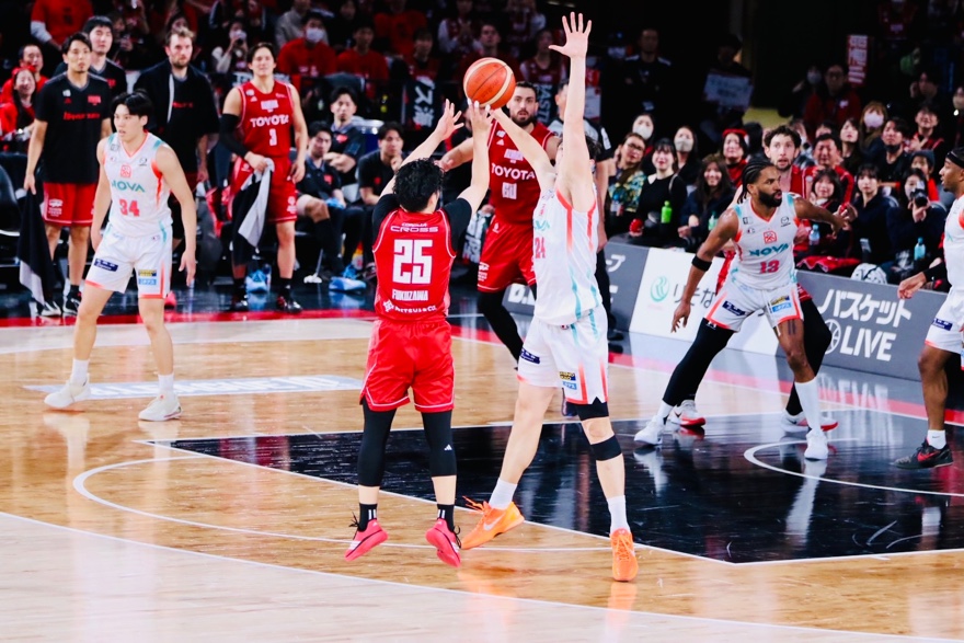 広島ドラゴンフライズに簡単なシュートを打たせず、トランジションでもしっかり走る。
