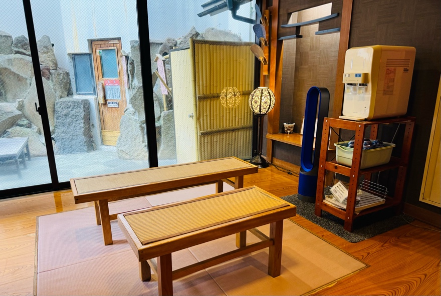 着替えゾーンにも休憩できる部分があって、飲み物も提供されています。