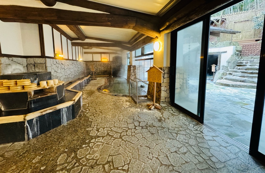 この洞窟風呂は洞窟の中に温泉があって、湿度がかなり高くなるんです。