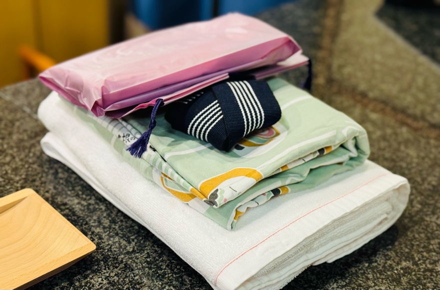 受付と精算を済ませると、アメニティー一式を貸してくれます。