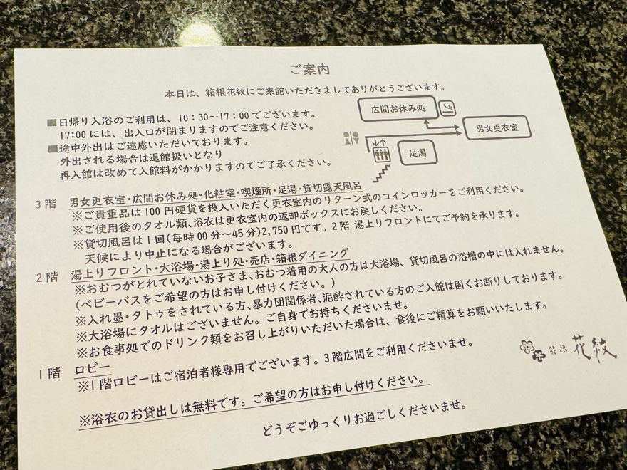 あとはいろいろなルールが書かれたメモをいただけます。
