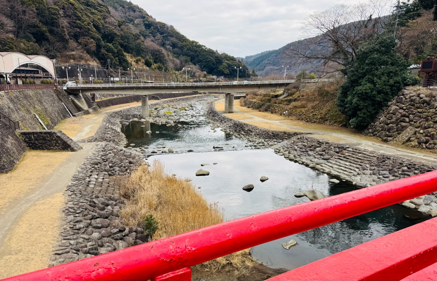 その早川に真っ赤の橋が掛かっています。