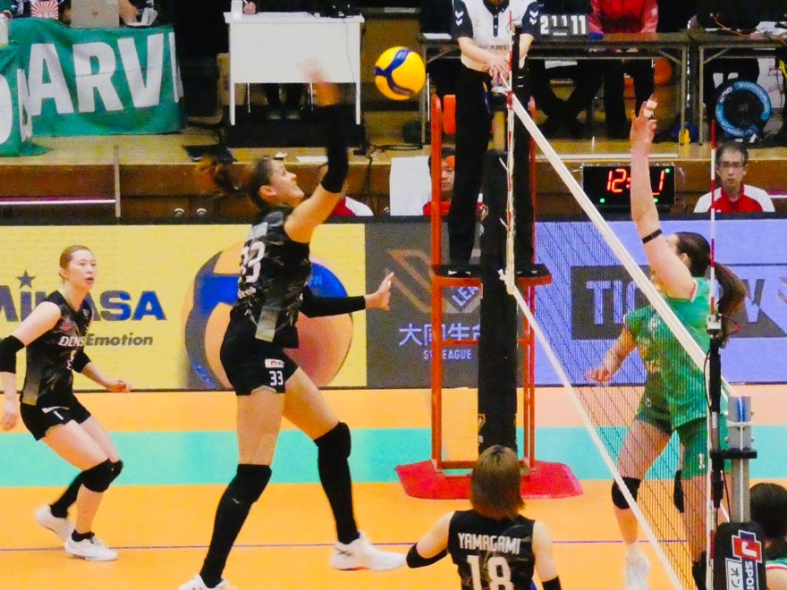#33 箕輪選手が、連続得点の大阪マーヴェラスの流れを切っていく。