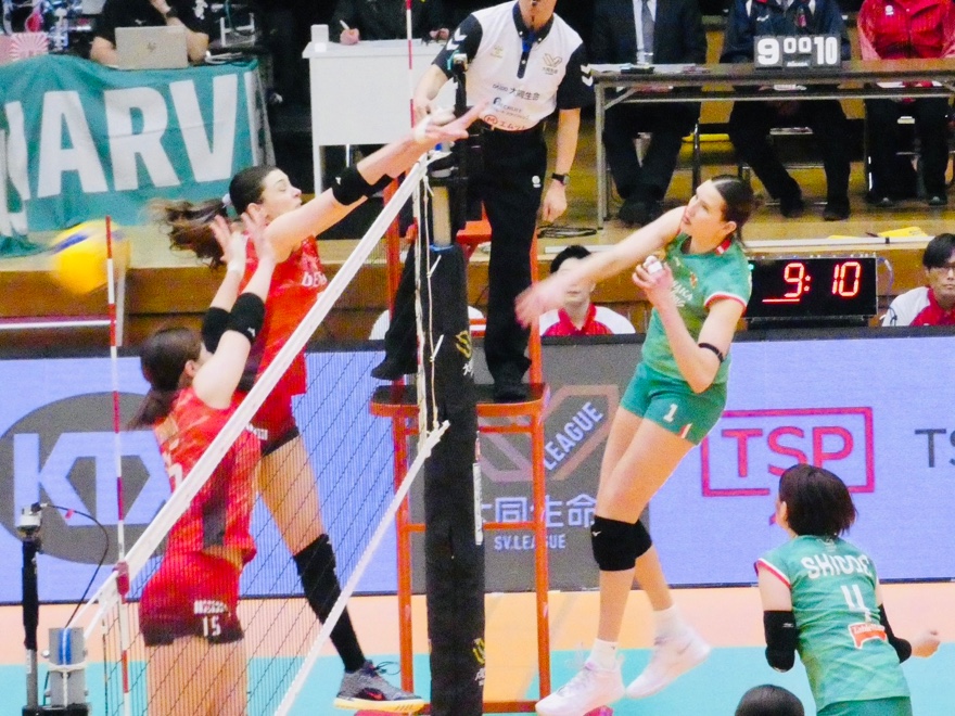ツインタワーの#1 サマンサ選手もブロックを連発!!