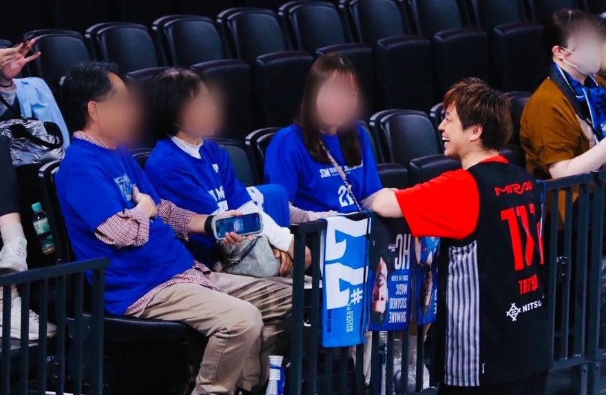 バスケはコートのすぐ横にお客様、ブースターが座っている。
