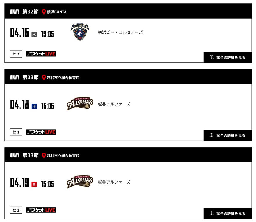 そして、翌週になりますが、ホームゲームは4月22日になります。