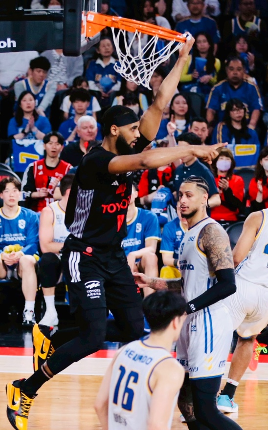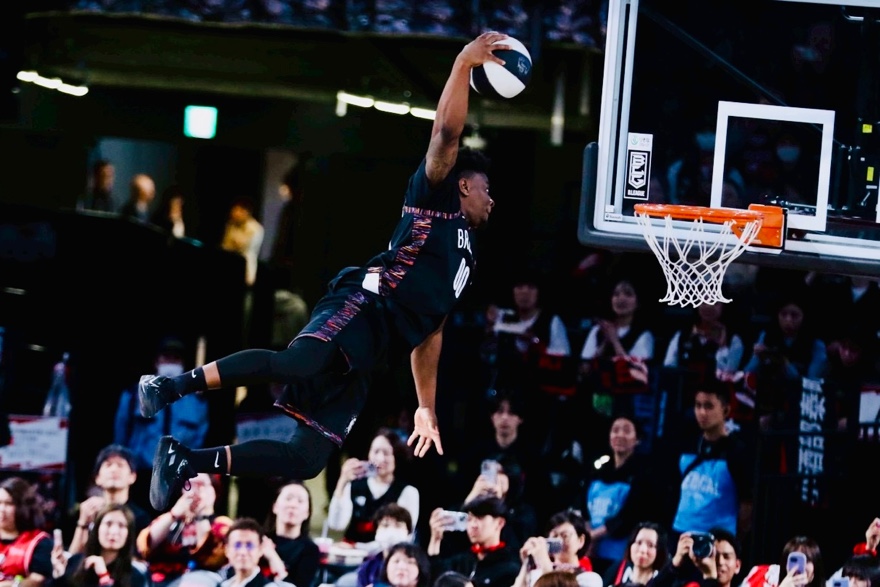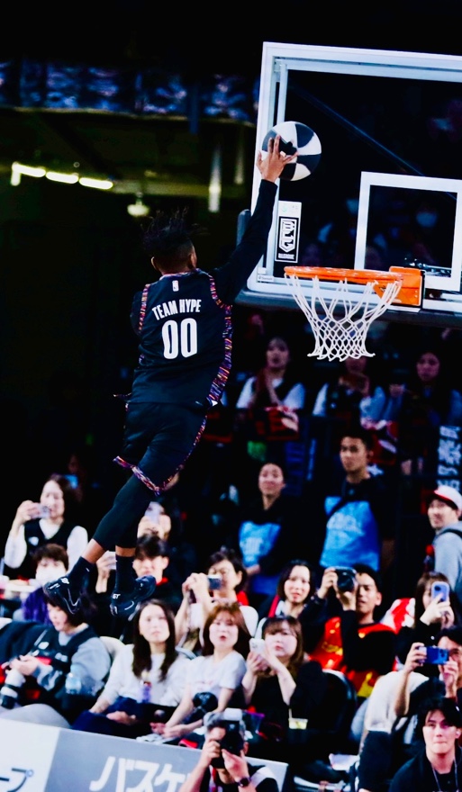 GAME1では、とんでもねぇトランポリンダンクを連発する!