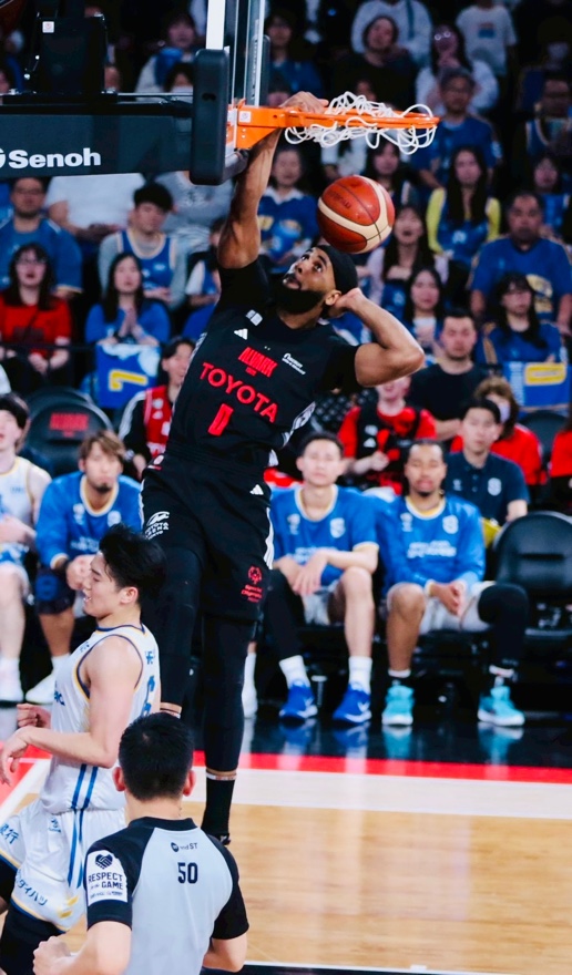 ワンハンドダンクをかましてくれたり、、、4Qでは3Pシュートも沈めて、、、
